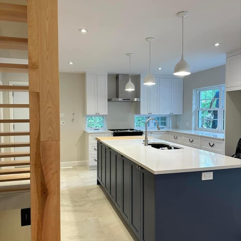 Nous vous accompagnons dans la création de votre cuisine et salle de bain idéales, parfaitement adaptées à vos goûts et à vos besoins. Nous réalisons également l'installation de plomberie pour laveuse-sécheuse, armoires et comptoirs.